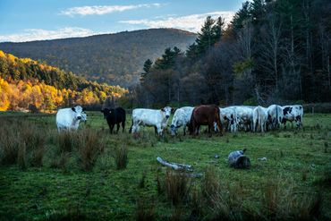 We raise our meat animals (beef, pigs, lamb, and poultry) out on pastures. They spend their days consuming grass and roaming the land thoroughly enjoying life to the fullest during each season.
